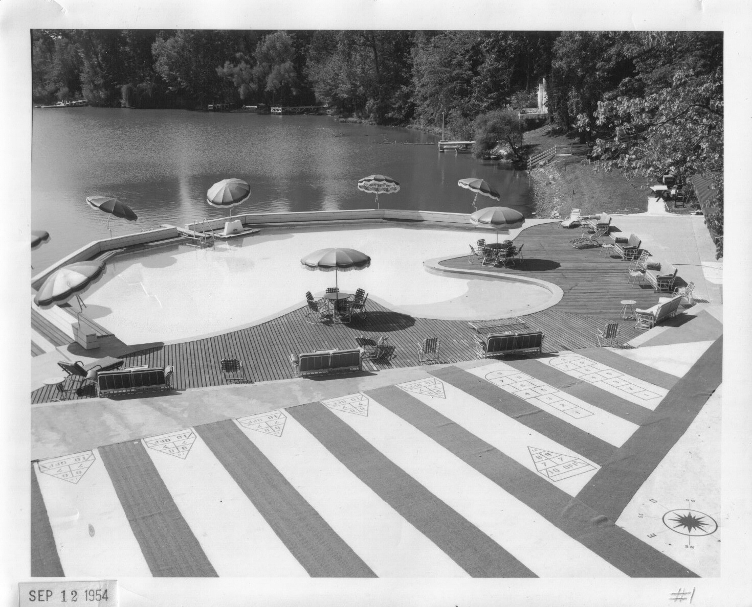 The French's pool, overlooking the lake, circa 1954.