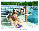 The French's pool, overlooking the lake, circa 1963. Swimwear may have changed, but the French estate remains much the same as it was then.