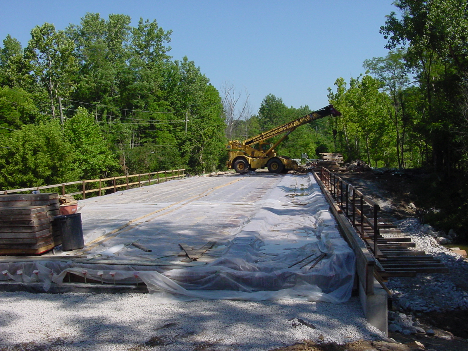 The deck of the new bridge curing, July 2011. The deck was done as a continuous pour.